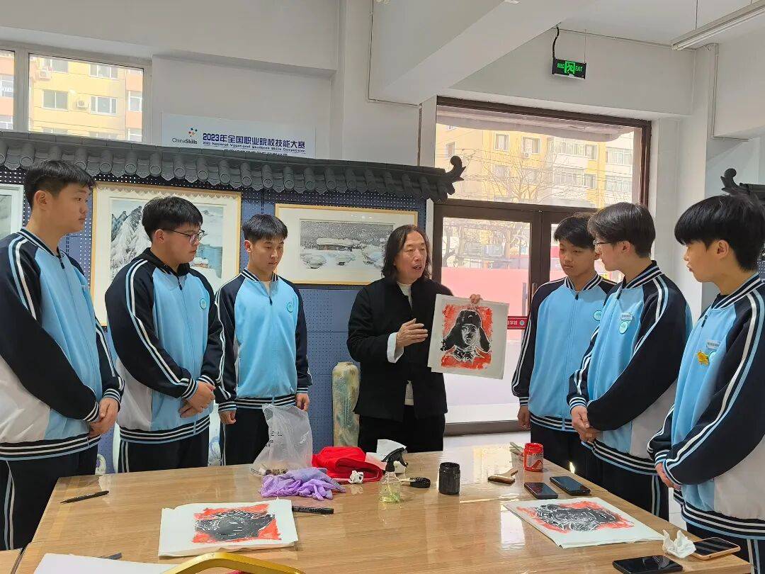 但张伟洪始终在思考一个问题:冰雪终将消融,艺术的表达能否找到新的载体?他给出的答案,是“拓彩冰雪画”。这一独创技艺,是在冰雪雕基础上,融合中国冰雪山水画、龙江冰版画的特点,在冰板上以刀代笔、以色造型,通过雕刻、涂色、拓彩,用夹宣纸进行拓印。颜料经防冻溶剂处理后,在纸上进行按、压、拍、拓、揭等技法处理,达到冰融幻化、冰彩相融的艺术效果。“最大的魅力在于不确定性。”张伟洪解释,冰融的过程无法完全控制,这种“意外”反而造就了每幅作品的独一无二,“它既有版画的硬朗,又有油画的丰富,还有水彩画的柔美,同时体现了中国画的写意境界。”