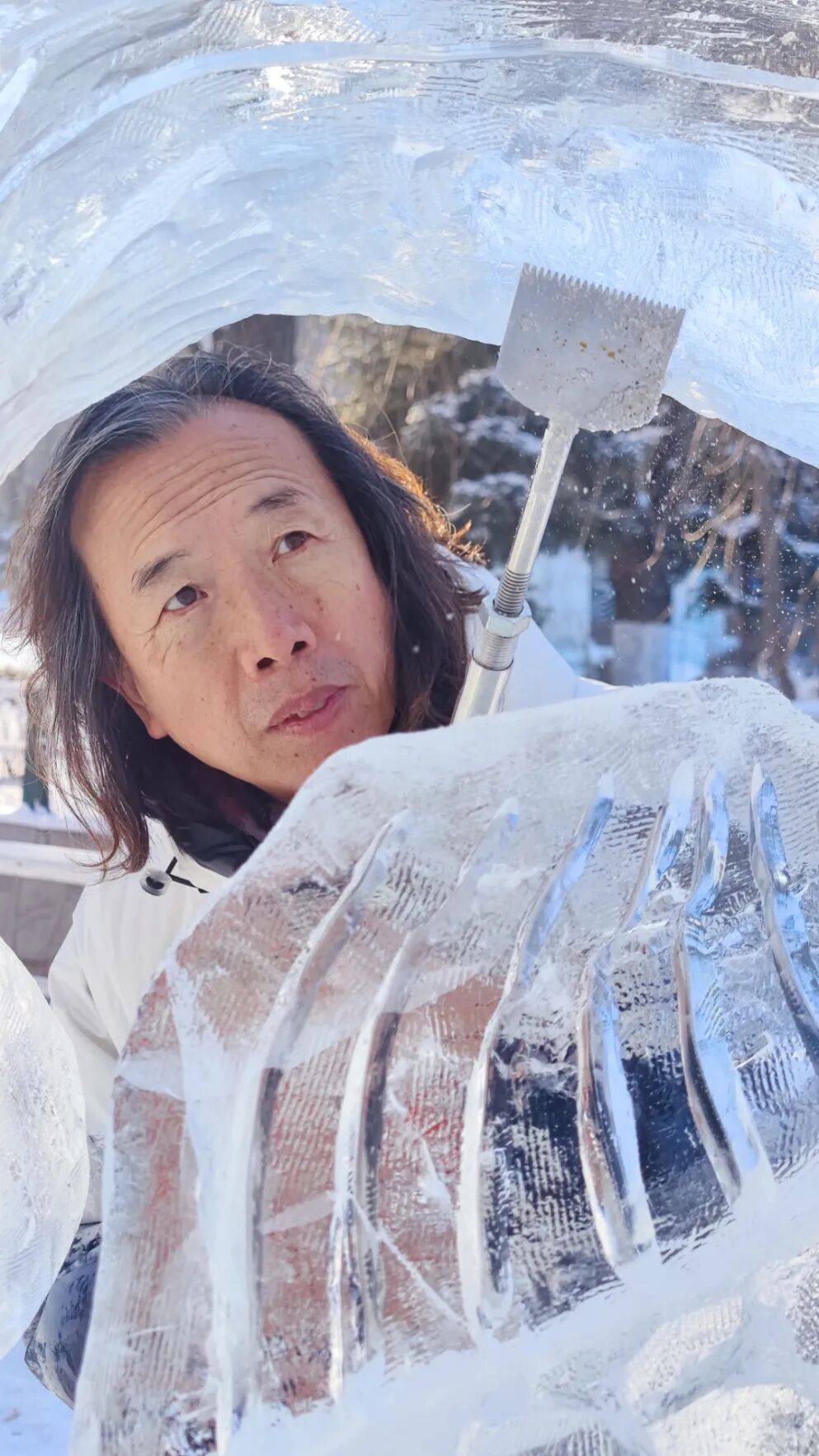 从松花江畔的渔家少年,到2021年被授予“黑龙江省第六批非物质文化遗产冰雪雕技艺代表性传承人”,张伟洪用近四十年时间,完成了从匠人到艺术家的蜕变。2025年,他被评为哈尔滨市第39届劳动模范、哈尔滨大工匠培育对象;2024年荣获“醉美冰雪季·最美劳动者”先进个人称号;2025年,因在哈尔滨第九届亚洲冬季运动会中的突出贡献,被评为黑龙江省先进个人。这些身份变化的背后,是他对冰雪艺术始终如一的坚守——在哈尔滨冬季零下二三十摄氏度的严寒中,采冰、砌冰、画稿、雕刻,每一道工序都是与寒冷的对话,与时间的赛跑。
